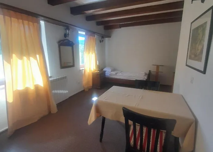 Det 4-stjärniga Tarcin Forest Resort Villa No 303 ståtar med rum med balkong och mathörna, samt sten eldstad för din bekvämlighet. Du hittar trevliga detaljer som separat toalett och dusch, tillsammans med hårtork och handdukar. Gästerna kan också njuta av utsikten över trädgården.